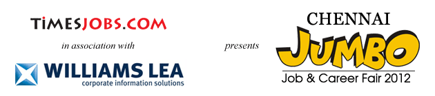 “Chennai Jumbo Job & Career Fair 2012” For Freshers /Exp in Chennai About Company Name : Chennai Jumbo Job & Career Fair 2012 Website : www.timesjobs.com/chennaijumbo Job Details Education : Check Details Experience : Freshers/Exp Location : Chennai Walk-in On 14th & 15th July 2012 From 10:00 AM to 5:00 PM @ Chennai Job Description Please carry Multiple copies of your latest resume and Passport size photographs. A separate queue for entry at the venue, for those who have registered online for Chennai Jumbo Job Fair